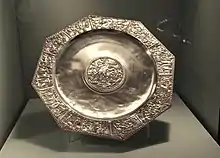 Une autre pièce très élaborée du trésor est ce qu'on appelle le plateau d'Ariane, un plateau en argent avec 13 représentations figuratives plus ou moins différentes sur le bord. L'image du centre montre le dieu du vin Dionysos, sa femme Ariane, une panthère[2]. Les représentations du bord et de l'image centrale sont encadrées par des motifs géométriques.