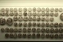 Les monnaies sont presque entièrement des deniers d'argent et des miliarense accompagnés de 17 médaillons d'argent ou multiples, pièces de prestige très rares. Les médaillons portent tous les portraits des trois fils de Constantin Ier : Constant Ier, Constance II et Constantin II. Ces médaillons sont des pièces commémoratives de l'anniversaire de leur règne. Les deniers proviennent de 11 ateliers. La plupart d'entre eux proviennent de pays occidentaux, en particulier de l'atelier de Trèves représenté par 110 monnaies. Le début de la série de pièces est un denier de Dioclétien datant de 294 après J.-C. La fin de la série est un denier Constant Ier de 349 après J.-C. Une barre d'argent porte le cachet de Magnence, datée vers 350 après J.-C., elle pourrait être un donativum de Magnence aux soldats lorsqu'il est devenu empereur. En s'appuyant sur deux citations de la douteuse Histoire Auguste, Instinsky émet l'hypothèse d'un don à un important personnage civil[2]. On remarque qu'aucune pièce n'est frappée par cet empereur. Il n'y a pas de pièces de monnaie datant de l'époque du seul règne de Constance II, ce qui signifie probablement que le trésor a été enterré après l'élévation de Magnence au rang d'empereur en 350 et avant le seul règne de Constance II et la mort de Magnence en 353.