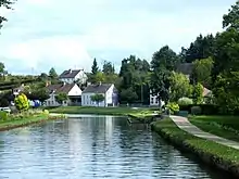 La Trézée à gauche, le canal de Briare à droite : vue vers l'aval près du camping d'Ouzouer. | |