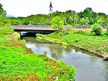 ![]() ![]() En haut, vue générale du bourg, en bas, vue de l'hôpital Nord Franche-Comté, en sortie d'agglomération. |