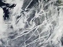 Une traînée de condensation de navire est un nuage qui se forme autour de la fumée libérée dans la troposphère par les navires en mer. Les molécules de vapeur d'eau condensent autour des minuscules particules (aérosols) du gaz d'échappement et servent de noyau de condensation. À mesure que la condensation s'intensifie, le nuage devient visible comme une longue traînée étroite s'alignant dans la direction du vent moyen de la couche où il se forme[1].