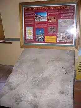 Les empreintes fossiles ont été trouvées dans le sud-ouest de l'Afrique du Sud, à environ 100 km au nord-ouest du Cap, dans le Parc national de la Côte Ouest, province du Cap-Occidental. Elles ont été déplacées au South African Museum, au Cap, pour les préserver, tandis qu'une réplique en béton les a remplacées sur la plage de Langebaan[2].