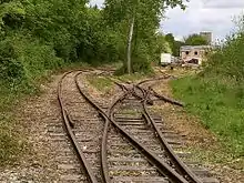 La gare en 2014 : au premier plan le début de l'évitement de la gare sur la Ligne de Saint-Omer-en-Chaussée à Vers à voie normale, avant sa reconstruction à voie métrique.
