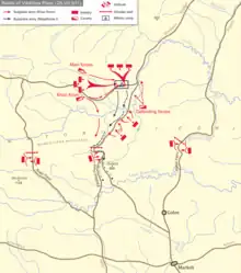 Michel Ier Rhangabé (r. 811-813) devait lui succéder. Profitant de l’incertitude régnant à Constantinople à la suite du coup d’État qui avait mené l’empereur au pouvoir, Krum entreprit de nouvelles campagnes en Thrace et dans la vallée du Strymon avant de proposer une paix qui fut refusée par l’empereur byzantin « sur l’avis, nous dit Théophane, de ses ignobles conseillers ». Toutefois les vraies raisons de ce refus doivent plutôt être cherchées dans le paragraphe 3 du traité de 716 qui stipulait que « les réfugiés (émigrants et déserteurs) des deux camps devraient être remis à leurs autorités respectives s’ils complotaient contre celles-ci »[2]. Cet article s’était avéré fort utile pour les Byzantins tant que leurs empereurs étaient en position de faiblesse, mais la situation s’était inversée après la crise de l’empire bulgare au milieu du VIIIe siècle[3]. En , les armées byzantine et bulgare se trouvèrent face à face après avoir convergé vers Andrinople (aujourd’hui Édirne en Turquie). En dépit de leur nette supériorité numérique, les Byzantins furent défaits lors de la bataille de Versinikia[4],[5].