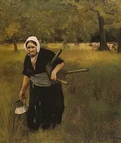 La Traite de la chèvre, peinture de Nikolaos Vokos, fin XIXe siècle.