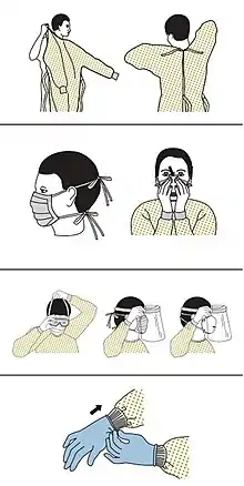 - « Sequence for Putting On Personal Protective Equipment (PPE) » [archive du ], Centers for Disease Control and Prevention (CDC) (consulté le )