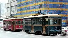 Voitures de la ligne 201, conservant le style de l'époque de sa création en 1909.