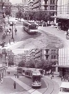 La même année, l'Association pour le développement des transports en commun (ADTC) voit le jour et pointe les défauts du Poma 2000 ainsi que l'évolution des tramways depuis les années 1950, alors que l'étude restait cantonnée à l'image désuète de l'ancien réseau grenoblois[4]. L'année suivante, la ville et le SMTC, sensibles aux arguments de l'ADTC, commandent une étude sur un réseau de tramway tandis que l'ADTC continue son action, développe des pistes de réflexions à ce sujet et effectue une visite sur le réseau zurichois tandis que la ville répond au concours Cavaillé ; les études dégagent un axe en T desservant Sassenage et suivant les principaux troncs commun du réseau de bus, à savoir l'axe gare-place Victor Hugo et la rue Félix Poulat ; le projet intègre dans un second temps la desserte du domaine universitaire sur une des branches, l'autre se dirigeant vers La Villeneuve et Échirolles[2],[4]. Ce projet ne se concrétise pas, la ville et le SMTC créé en 1973 privilégient d'abord la modernisation de la flotte d'autobus et de trolleybus et l'aménagement de voies réservées, ce qui ne supprime pas le goulot de la rue Félix-Poulat, encombrée par les trolleybus aux heures de pointe[2].
