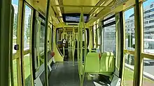 En effet, les études prévoyaient l'achat de matériel classique pour l'époque, avec un plancher haut à 87 cm du sol et avec trois marches à gravir ; cette décision fit bondir l'ADTC et les associations de personnes en situation de handicap qui exigent l'achat de matériel à plancher bas permettant l'accès aux fauteuils roulants ; les manifestations et pétitions font plier le SMTC qui réussit à convaincre Alsthom de mettre au point des rames avec un plancher placé à 36 cm du sol[6]. La solution est trouvé via l'ajout d'un module central équipé d'un bogie à essieu coudé permettant d'abaisser le plancher sur la majeure partie de la rame (17 des 29,30 m), sauf aux extrémités en raison des bogies moteurs[6].