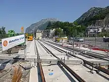 Une nouvelle station voit le jour sur la ligne A en afin de desservir la nouvelle gare d'Échirolles[2]. La construction des lignes C et D, entamés fin 2003 dans le cadre du projet « Tram3 » et marqué par la démolition par explosifs de l'autopont Vallier-Jaurès en août 2004[13], s'accompagne du prolongement de la ligne B jusqu'à la gare de Grenoble-Universités-Gières complètement réaménagée pour l'occasion et de la construction du centre de maintenance des tramways de Gières[2],[14]. La ligne C, longue de 17,6 km est mise en service le et constitue la plus grande extension du réseau grenoblois depuis plus de 15 ans[2]. Le , la ligne D, construite simultanément avec la ligne C[14], est mise en service : cette ligne de seulement 2,6 km de long dessert la commune de Saint-Martin-d'Hères mais ne dessert pas Grenoble[2].