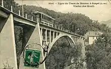 Le tramway de Menton à Sospel sur le viaduc du Caramel. | |||||||||||||||||||||||||||||||||||||||||||||||||||||||||||