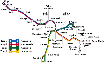 - Liste des stations de la ligne 2 entre Kopli et Suur-Paala :