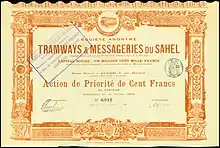 Action de la S. A. des Tramways et Messageries du Sahel en date du 14 juin 1904