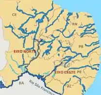 Le transfert partiel des eaux du rio São Francisco consiste en la construction de deux canaux, qui iront distribuer l'eau du rio São Francisco dans les cours d'eau intermittents de la région nord-est semi-aride du Brésil. Les bassins récepteurs se trouvent dans quatre États : Ceará, Pernambouc, Paraíba et Rio Grande do Norte. C'est un chantier gigantesque qui suscite bien des discussions.