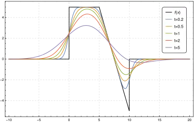 Pour les petites valeurs de t, Wt[f] est très proche de f, mais régulière. Plus t est grand, plus l'opérateur va moyenner et changer les variations de f. Physiquement, Wt revient à suivre l'évolution de l'équation de la chaleur (ou de diffusion) avec t correspondant au temps, avec une propriété additive,