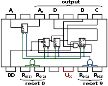 Le compteur 7490 est un compteur asynchrone décimal (composé de 4 bascules JK).