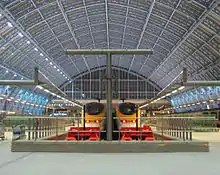 Eurostar est un service ferroviaire international qui relie la gare de Saint-Pancras à la gare du Nord à Paris (France) ainsi qu'à la gare de Bruxelles-Midi (Belgique), via la Gare de Lille-Europe (France). Les TGV Eurostar empruntent le Channel Tunnel Rail Link, ligne à grande vitesse ouverte en intégralité en et rebaptisée High Speed 1, avec deux arrêts supplémentaires à Ebbsfleet et Stratford, ce dernier ouvert à partir de 2009[3]. D'autres trains de banlieue à grande vitesse (225 km/h) reliant la capitale britannique au Kent utilisent une partie de ces voies depuis 2009.