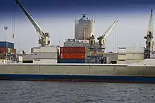 Le port autonome de Douala représente à lui seul 95 % du trafic maritime de marchandises camerounais. C'est le plus grand port de la zone CEMAC. Situé à l'embouchure du fleuve Wouri, est le seul point d'entrée maritime pour le Cameroun et les pays enclavés de la zone. Son trafic de 6 millions de tonnes en 2004 assure 95 % des échanges extérieurs du pays. Sa capacité de 7,5 millions de tonnes (26 quais, 7 terminaux spécialisés et 15 entrepôts) est extensible à 10 millions[11]. Un programme d'équipement cofinancé par la Banque mondiale, l'UE et la France a permis de ramener les délais de traitement des marchandises de 25 jours à 7 jours à l'importation et de 7 jours à 2 pour l'exportation. Toutefois, Douala n'est pas un port en eau profonde: les navires (1 300 par an d'une jauge brute de 15 000 t) y accèdent en empruntant un chenal de 24 km et de 6,5 m de profondeur qu'il faut constamment entretenir. D'où la nécessité de la construction du port en eau profonde de Kribi, dont la mise en service en deux tranches est prévue pour 2014. Le financement du terminal industriel est pour l'essentiel pris en charge par la Chine[12], l'État camerounais assurant le financement de l'embarcadère minéralier.