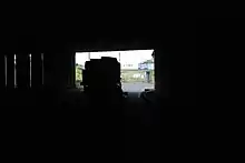 Porte tout avec rétroviseurs dans une rue de Douala.