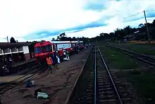 Locomotive marque Bombardier canadien type CC série 2230 le la société de transport par chemin de fer du Cameroun dans une gare.