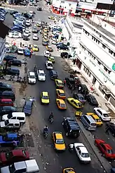 Transport inter urbain dans la ville de Douala, entrée du pont sur le Wouri.