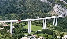 Le principal axe autoroutier de l'Ain est l'autoroute A40, qui, se séparant de l'autoroute A6 près de Mâcon, dessert la préfecture Bourg-en-Bresse puis se dirige vers Genève et le tunnel du Mont-Blanc. Cette autoroute, qui constitue ainsi la principale liaison entre le bassin parisien et l'Italie, compte plusieurs ouvrages d'art de grandes dimensions dans le Haut-Bugey. L'agglomération d'Oyonnax est desservie par une antenne nommée autoroute A404.