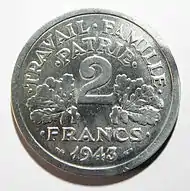 Travail, Famille, Patrie est la devise officielle de l'État français pendant la période dite du régime de Vichy. Cette devise figure notamment sur les pièces de monnaie de cette époque.