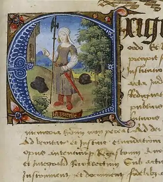 Lettrine historiée, Paris, BnF, département des manuscrits, ms. Latin 14665, fo 349 ro, fin du XVe siècle.
