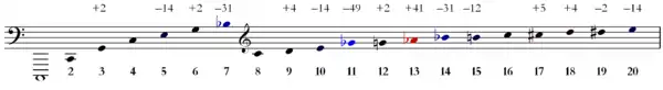 Les notes de la série harmonique naturelle se chevauchent, mais ne correspondent pas exactement, aux notes trouvées dans la gamme chromatique familière du tempérament égal occidental standard. Plus importantes dans la gamme du trembita, les 7e et 11e harmoniques sont particulièrement remarquables parce qu’elles tombent entre des notes adjacentes dans la gamme chromatique.