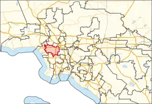 - les quartiers de la ville de Los Angeles de Mid City, West Los Angeles, Westwood, Century City, Rancho Park, Palms, Mar Vista, Del Rey, Sawtelle, Beverlywood, View Park-Windsor Hills, Cheviot Hills, Pico-Robertson, Exposition Park, University Park, Vermont Knolls, West Adams, Leimert Park, Jefferson Park, Vermont Square, Ladera Heights, Hyde Park, Crenshaw et Baldwin Hills.