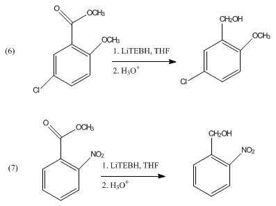 Le LiEt3BH ne réduit pas les acétals. Il peut en revanche être utilisé dans le clivage par réduction des mésylates et des tosylates[5]. Il peut déprotéger sélectivement les groupes N-acyle tertiaires sans affecter les amides secondaires[6]. On a également observé la réduction d'esters aromatiques pour former les alcools correspondants :