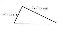 Le calcul de l'aire de cette figure est étudié dans les problèmes R51 du papyrus Rhind, M4, M7 et M17 du papyrus de Moscou et datant tous du Moyen Empire. Le problème R51 constitue, dans l'histoire mondiale des mathématiques, le premier témoignage écrit traitant du calcul de l'aire d'un triangle.