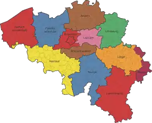 Le ressort de la juridiction est l'arrondissement judiciaire[2], mais par dérogation, il existe deux tribunaux de première instance dans l'arrondissement judiciaire de Bruxelles pour satisfaire aux exigences linguistiques de la capitale. Il existe donc 13 tribunaux de première instance (répartis en différentes divisions) pour l'ensemble du territoire :