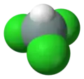Industriellement, le trichlorosilane est produit en soufflant du chlorure d'hydrogène sur un lit de poudre de silicium à 300 °C. Les deux composés réagissent pour former du trichlorosilane et de l'hydrogène suivant l'équation chimique :