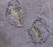 Les trilobites sont fossilisés en grand nombre dès le Cambrien inférieur, il y a environ 525 millions d'années[12]. Auparavant, à l'Édiacarien, on ne trouve pas de Trilobites, mais des formes non trilobées morphologiquement proches, dont ils pourraient être issus : les Spriggina[13]. Les premiers véritables trilobites appartiennent à l'ordre des Redlichiida, mais très vite les ordres des Agnostida et des Ptychopariida apparaissent. Le Cambrien est une période importante de diversification pour les Trilobites qui atteindront leur maximum de diversité au Cambrien supérieur. L'Ordovicien est marqué par des disparitions, mais aussi par un net renouvellement des faunes à trilobites avec l'apparition de nouveaux groupes, en particulier les Asaphida et les Corynexochida. Durant cette période, les trilobites présentent encore une très forte diversité.