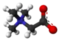 La triméthylglycine est un acide aminé N-triméthylé. Cet ammonium quaternaire existe sous la forme de zwitterion à pH neutre.