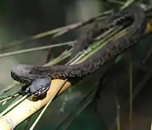 Ce serpent, comme les vipères en Europe, utilise son venin principalement pour tuer ses proies, de préférence des oiseaux et des grenouilles ; mais il peut aussi l'utiliser pour se défendre, parfois contre l'homme chez qui une morsure peut être dangereuse : douleur insoutenable mais non constante et qui décroît rapidement (fort heureusement, cette morsure n'est mortelle que dans de très rares cas).