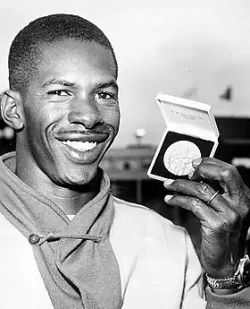 Lors des Jeux olympiques de 1948, à Londres , le Suédois Arne Åhman remporte le titre olympique sous de fortes intempéries[15] avec la marque de 15,40 m, devant l'Australien George Avery (15,36 m) et le Turc Ruhi Sarıalp (15,02 m)[17].