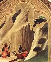 - L’accident du chevalier tombé dans un ravin (en haut)