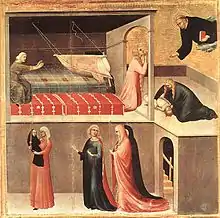 Chacune des quatre scènes est structurée à l'identique dans le même format (82 × 67 cm) : l'accident, l'intervention du saint (plusieurs fois représenté dans la même scène), la prière qui suit, les décors issus de la ville ou de la campagne siennoise.