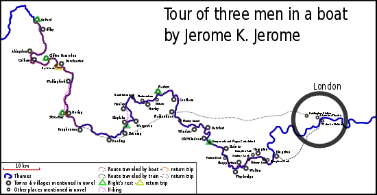 - Jerome K. Jerome (1909). Author's Introduction. Three Men in a Boat (2nd Edition ed.). Bristol: J W Arrowsmith