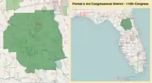 Le redécoupage en Floride, effectif pour les élections fédérales de 2012, a radicalement modifié la nature du 3e district. De 1993 à 2012, le district appelé le 3e district comprenait un territoire entièrement différent, à peu près similaire au 5e district à partir de 2013. De même, le territoire actuel du nouveau 3e district, à partir des élections de 2012, est composé de parties de l'ancien 2e, 4e, 5e et 6e districts, bien qu'il soit géographiquement similaire au 6e district d'avant 2013. L'ancien 3e district était (et l'actuel 5e district est) un territoire intentionnellement gerrymander conçu pour unir des régions disparates du nord-est de la Floride avec d'importantes populations afro-américaines dans un district à majorité noire, et était extrêmement démocrate dans les schémas de vote.