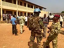 Le la totalité des forces africaines de la MISCA passent sous l'autorité de la MINUSCA. Lors d'une cérémonie à Bangui, au Camp M’Poko, les soldats africains échangent leurs bérets verts pour des bérets bleus[87].