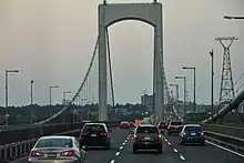Après la Seconde Guerre mondiale, l'augmentation de la circulation routière laissait entrevoir que le pont de Québec ne pourrait suffire à la demande. Dès la fin des années 1940, on propose la construction d'un nouveau lien routier, qu'il soit un pont ou un tunnel[Note 2],[5]. À l'automne 1961, le ministère de la Voirie prend la décision de construire cette seconde traversée du fleuve. L’idée d'un tunnel entre le secteur de Limoilou et le centre-ville de Lévis[Note 3] est défendue en 1963 par le Bureau de l’industrie et du commerce du Québec métropolitain mais, pour des raisons économiques, un pont suspendu plus à l'ouest lui est préféré[6]. En novembre 1970, après quatre années de travaux, le pont Pierre-Laporte est inauguré immédiatement à l'ouest du pont de Québec, là où la distance entre les berges est la plus courte.