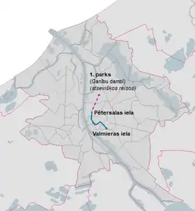 | 1 | Pētersalas iela | Valmieras iela | ![]() |