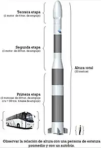 En 2014, deux démonstrateurs VEx 1 sont lancés depuis la base de Punto Indio rattachée à l'Université nationale de La Plata. Ces fusées longues de 14 m pour un diamètre de 1,5 m et une masse de 2,8 tonnes sont propulsées par un moteur-fusée de la T-4000 brûlant un mélange de MMH et de peroxyde d'azote additionné d'acide nitrique. Le démonstrateur doit effectuer un bref vol en s'élevant de 300 mètres. Deux lancements ont lieu le et le 15 août 2014 depuis le site de l'Université nationale de La Plata à Punta Indio. Seul le second est un succès et aurait permis de qualifier le système de guidage du futur lanceur[2],[3].