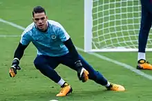 Ederson, vainqueur du trophée en 2020 et 2021, à l'échauffement avant un match entre Manchester City et Tottenham Hotspurs au Nissan Stadium de Nashville, Tenesse, USA, en 2017