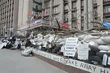 Le dimanche 6 avril, des manifestants pro-russes organisent un rassemblement à Donetsk pour réclamer un référendum sur l'indépendance[70]. Un groupe de 1 000 manifestants se détache de la foule et prend d'assaut le bâtiment du RSA, la police n'offrant que peu de résistance[71]. Ils occupent ensuite le bâtiment et hissent le drapeau russe pendant que les gens à l'extérieur scandent « Russie, Russie »[70]. 100 personnes parviennent à se barricader dans le bâtiment[70].