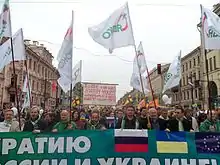 Ces troubles, fomentés par la Russie dans le cadre d'une campagne politique et militaire coordonnée contre l'Ukraine[8],[9],[10], sont cités par la propagande russe sous l'euphémisme « Printemps russe » (russe : Русская весна (Rousskaïa Vesna), ukrainien : Російська весна)[11],[12],[13].