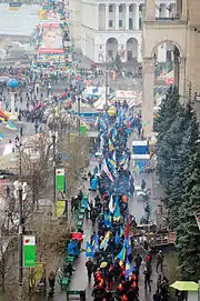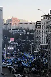 L'Ukraine est en proie à des troubles lorsque le président Viktor Ianoukovytch refuse de signer un accord d'association avec l'Union européenne le 21 novembre 2013[14]. Un mouvement politique organisé connu sous le nom d'« Euromaïdan » exige des liens plus étroits avec l'Union européenne et l'éviction de Ianoukovytch[15]. Ce mouvement est finalement couronné de succès, culminant avec la révolution de février 2014, qui renverse Ianoukovytch et son gouvernement[16]. Cependant, certaines personnes dans l'est et le sud de l'Ukraine, en grande partie russophone, les bases traditionnelles de soutien à Ianoukovytch et à son Parti des régions, n'approuvent pas la révolution et commencent à protester en faveur de liens plus étroits avec la Russie.